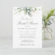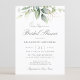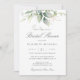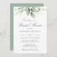 Vacker inbjudningskort för möhippan med vattenfärgad eukalyptus och guld löv.
