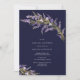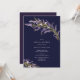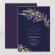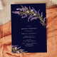En chic Classic elegant blommigt lavender water color inbjudningskort för möhippan med lila lavender botanical stems grenar och blommor , grönt och brunt blad och elegant calligraphy on mörk lavender marin blue.