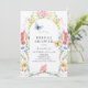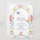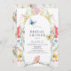 Eleganten inbjudningskort för möhippan har en vit bakgrund med färgstarka vilda blommor och fjärilar som ramas av en båge i vattenfärg. Anpassa den efter dina behov. Du hittar matchande produkter i min butik.