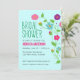 Det rundade hörnet inbjudningskort för möhippan har färgstarka blommor och löv i hand plockade. Bakgrunden till färg är lätt teal. Med anpassade kan du lägga till duschinformation. Inbjudan är perfekt för vår eller sommarens möhippa.