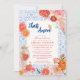 Skål för kärlek och lycka med Kärlek vid Första Spritz Blommigt kärlek vid första spritz Inbjudningskort för möhippan! Den här blommigten har vibrerande orange, citrusaccenter och elegant typografi och fångar den livliga andan hos ett Aperol Spritz-inspirerat firande. Perfekt för en åklagartematisk eller cocktail-möhippa med en blå Medelhavsbricka, denna inbjudan anger tonen för en roligt och sofistikerad italiansk temainsamling. Fullt anpassade med din händelseinformation är det idealiska sättet för gästerna i inbjudan att gå med i bubbelfestligheterna.