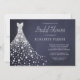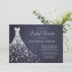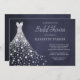 Vita blanka diamanter med bröllop klänning på en mörk, blå kritersbakgrund skapar en modern elegant, strålande inspirerad inbjudningskort för möhippan.