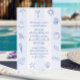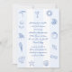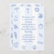 En roligt viskstrand träffade inbjudningskort för möhippan med en ram av hand plockade illustrationer av strandplagg i blått, med ljusblå rand som bakgrund. Anpassa med dina detaljer i ett blått handskrivet stil-teckensnitt.