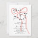 Fira i stil med den här chicen inbjudningskort för möhippan med ett fet handritat rosa-båge och elegant modernt skript. Den lekfulla men sofistikerade designen gör det till perfekt för ett coquette-inspirerat tema, där romantik kombineras med ett litet stycke stollig. Perfekt för blivande brider som vill ha en roligt, feminin och minnesvärd möhippa firande.