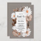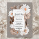 Inbjudan dina vänner och nära vänner till ditt möhippa te med blommigt inbjudningskort för möhippan i höst med grått gräns med örntnade petunier och vita daisy.