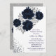 Fira din speciella dag i tidlös elegans med den här marinblå peonien och silver glitter lämnar bröllopsinbjudan. Den här moderna men romantiska utformningen har djupblåfärgade blommigtar parade med mousserande silver-accenter och är perfekt för par att söka ett chic och sofistikerat bröllop-tema. Idealisk för formellt bröllop, vintern firande, eller för vilket evenemang som helst med lyx hand. Anpassa enkelt med dina bröllop-detaljer.