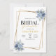 Blåa blommor Inbjudningskort för möhippan med Guld Ram : Inbjudan gäster som firar den blivande briden med denna elegant och sofistikerade inbjudningskort för möhippan. Med vackra blå blommigt-accenter parade med en lyxig ram i guld är den här utformningen ett exempel på tidlös charm och förfining. Riken med blå nyanser och metalliskt guld skapar ett klass- och snyggt-utseende, perfekt för en möhippa med glamor. Anpassadet ser till att din händelseinformation presenteras på ett sätt som kompletterar designen. Den här inbjudan är perfekt för moderna, romantiska eller klassiska möhippor.