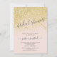 En modern typografi, söt chic och elegant för duschmunkar i guld glitter med pastellblock för rosa färg möhippa partiinbjudan.