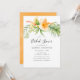 Vattenfärgsstranden inbjudningskort för möhippan med orange hibiscus designad för att snabbt och enkelt kunna anpassas till dina händelsespecifikationer.