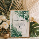 Välkomsttecken för den tropiska gröna möhippan i handflatan, med faux guld geometric ram gräns.