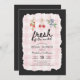 Minneshögen med denna "Fresh off the Market" inbjudningskort för möhippan Den vackra handskrivna typografin med rosa gingham i svart bakgrund är snyggt och roligt. Har vattenfärgade jordgubbar, körsbär och blåbär. Perfekt för en trädgårdsteman eller för jordbrukare på marknaden i stil, med lite charm. Se samordna saker i vår butik, Enchanted Finch.
