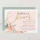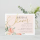 Elegant inbjudningskort för möhippan med faux guld-folie skript mot ett överlägg av rosa med vackra vattenfärgspennor och rosor i persikor- och krämsskal. Informationen visas med enkel typografi av snyggten.