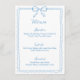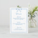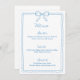 Ange tonen för ett elegant bröllop med denna förfinade blå meny med en känslig bukbild och skalat gräns. Den tidlösa utformningen är perfekt för något blått, Franskens Vintage, kustens Chic eller bröllop och evenemang som inspirerats av pengar. Anpassade för bröllop, möhippor och party.