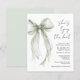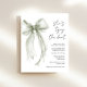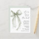 Budgetvänlig inbjudningskort för möhippan med en grönt med lätt kokquetfärg, "Hon gifter sig" i ett modernt kalligrafiskript i chic och bridens namn och duschdetaljer i namn i enkla bokstäver. Den här pappra för halvblank i budgeten är ungefär lika viktig som fotopapper. Det finns också en större version av det traditionella kortet lagrar 5 x 7 (meddelande om länken).