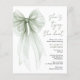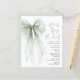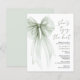 Charming budgetvänlig inbjudningskort för möhippan med en vackert handmålad vattenfärg av en stor grönt coquette-båge, "Hon är gifter sig" i ett chic-sage-grönt-skript, och hennes namn och händelsedetaljer i ett enkelt, modernt brev. Den här pappra för halvblank i budgeten är ungefär lika viktig som fotopapper. Det finns också en tyngre version av det traditionella kortet lagrar 5 x 7 (meddelande oss för länken).