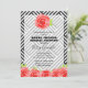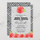 Inbjudningskort för möhippa med temat Derby har röd vattenfärg ro på en bakgrund med rutat svart och vitt diagonalt rand. MATCHING-objekt i vår butik.