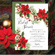 I eleganten har inbjudningskort för möhippan en strålande röd poinsettimiblomma med grön färg. Inbjudan är perfekt för att fira den kommande bruden under julhelgen. På framsidan av inbjudan finns de röda poinsettierna blommor och grönska, tillsammans med bridens namn, datum, tid och plats för duschen. Den övergripande utformningen är festlig och sofistikerad, och inbjudan kommer säkert att imponera på dina gäster.