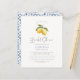 Fira den blivande briden i stil med denna elegant och det moderna citrontemade inbjudningskort för möhippan. Den här inbjudan till chic och budget med en vacker, handmålad vattenfärgad illustration av två citroner och citroner blommar som hänger från träd gren är perfekt för en rad olika möhippor. Den klassiska, elegant-typografin, parad med modern handskriven kalligrafi, skapar ett sofistikerat och contemporary utseende som imponerar på gästerna. Baksidan av inbjudan har färgat blå italienska plattor, vilket tillför en liten medelhavscharm till denna design. Perfekt för alla vår- eller sommarevenemang, oavsett om det är en brunch på bakgården, en rundtur på vingården eller en möhippa vid insidan av firande, kommer denna inbjudan att ge solsken till alla tillfälle. Oavsett om du planerar en möhippa som kallas "rustika", "bondgårdar", "italienskinspirerade" eller "citrustema", är det här inbjudan som anger tonen för en minnesvärd händelse. Anpassa inbjudan med din händelseinformation, eller använda Zazzles lättåtkomliga Design Verktyg att byta typsnitt, färg och placering. Som en del av budgetvalet för Zazzle är lakan inte en vanlig storlek eller papper kvalitet för inbjudan. Om du vill ha den här designen på ett inbjudningskort kan du hitta den i vår butik eller använda på Zazzle Make Maskin för att överföra den till valfri produkt. En "Hon hittade sin huvudsakliga klämning"-version av den här designen finns i vår butik. Bläddra i vår butik om du vill ha mer citron inbjudningskort för möhippa. Jag kan gärna skicka några frågor till mig - jag är lycklig för att hjälpa till!