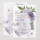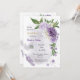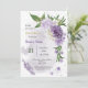 Drömlig romantisk lila och vita blommor och grönt löv botaniskt inbjudningskort för möhippan. glitter-detaljerna simuleras