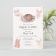 Lingerie & Lattes inbjudningskort för möhippan visar elegant bröllop lingerie, en mysigt latte, och boho-blommigtar, som skapar en charming- och snyggt-design. Baksidan har en vacker möhippa mönster med bröllop-kakor, delikat delar, blommigtar och mycket annat, vilket ger en nyck.