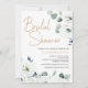 Elegantens moderna blommigt sommar-inbjudningskort för möhippan har en bukett med vattenfärgsvit lisianthus som är självklar i vita och elfenbensskuggor, med lush grönt botaniska löv och eukalyptus. Hitta fler matchande utformningar och variationer från min "firandestund"-butik.