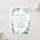 Anpassa den här Snyggten Elegant Vacker modern Fresh Blue Watercolor Grey Lämnar Bröllop Inbjudningskort för möhippan. Den här botaniska designen är lämplig för vår, sommar- eller vinterbröllop. Med en bild av en originalvattenfärg lämnar du grafik.