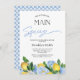 Den moderna blå Blommigten Lemon Inbjudningskort för möhippan