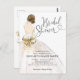 Modern Bride White Guld Bröllop Gown Dress Elegant Calligraphy Heart Inbjudningskort för möhippan