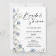 Modern Dusty Blue Wildblommor Inbjudningskort för möhippan Modern blå och vita vilda blommor inbjudningskort för möhippan med en underbar arrangemang på sidan och basen. Baksidan av inbjudan är en dammig blå färg.