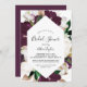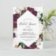 Denna moody lila blåser inbjudningskort för möhippan är perfekt för en modern möhippa. Blommigten för elegant har mörk lila av plommon och vita tulpanblommor med emerald grönt löv och guld löv accents.