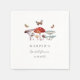 Rustik möhippa av skogstema papper napkin med vattenfärgad illustration av svampar och myter.