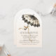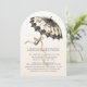 En underbar inbjudningskort för möhippan av ett söt elfenben och svart lacy paraply med ett band. Bakgrund är ett övertoningselfenben som står i svart. Känd vit papper med en bågformig form.