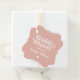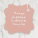 Elegant personligt bröllp möhippa-kardstock-favorittaggar har ett modernt kalligrafi-skript "Möhippa"-typografi med söt hjärtaccent och dekorativ kant-form. Anpassa med bridens namn och ett anpassningsbar tack för att du firar budskapet på baksidan. Ren och enkel design. Observera att systemet ro guld och vita färg kan ändras.