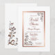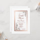 En elegant guld/koppargränsad blommigt inbjudningskort för möhippan med varma ro-blommigt-barr i diagonalhörnen.