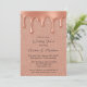Fira din speciella dag med den glamorösa bröllopsinbjudan till ro guld. Med en skakande bakgrund i glitter och elegant metalliska droppar i guld i ro är detta en perfekt för det moderna bröllop med lite gnistra. Perfekt för möhippor, mottagningar eller någon luxe-romantisk händelse. Anpassa med dina bröllop-uppgifter om du vill ha ett riktigt häpnadsväckande meddelande.