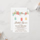 Mason burk inbjudningskort för möhippa. Rustic hand plockade mason burk hänger från träd gren med blommor och snurrar. Modern färg av mjuk mintblått, korall, gult, grönt och brunt. Anpassa med initialerna för brud och triom. En populär design för en land-möhippa eller falla temat möhippa inbjudan. Anpassa enkelt din händelseinformation.