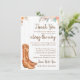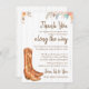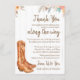 Skicka ett hjärtligt tack med rustik charm med hjälp av den här Möhippan Rustic Land Boots - tack. Det här kortet har en lada-bakgrund, blommigt-accenter och klassiska cowboystövlar och kompletterar perfekt din westerna eller land-temade möhippa eller par-dusch. Anpassa insidan med ett anpassningsbar-meddelande eller lämna det tomt om du vill skriva ditt eget tack. ・ Westerna cowboystövlar med rustiska blommigtar ・ Viktat tackkort - anpassa texten i texten ・ Perfekt för möhippor, bröllop eller par-duschar ・ Koordinerar vackert med lada eller land teman ・ Ett charmerande sätt att visa uppskattning för gästerna