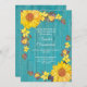Möhippan Rustic Solros Teal Wood Bröllop Inbjudningar