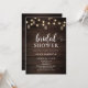 Boho rustic inbjudningskort för möhippan har marsala och blommor av rosa på träbakgrund.