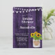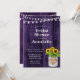 Jordbruksföretaget i Rustic höst stil inbjudningskort för möhippa. Rustic faux wood lila bakgrund med hängande sträng ljus och mason burk fullt av solblommor. Anpassa med din möhippa i bröllop. Skapat av © Lesruba Designs.