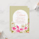 Den här Elegantens rosa och vita blommigt inbjudningskort för möhippan har din möhippa i modern skrift med blommor med rosa och vit vattenfärg och botaniskt blad i ökeninspirerad jordtonsnyans med persikor, sage grönt, vitt och elfenben med rosa bakgrund. En perfekt möhippa brunch-inbjudan till möhippan party.