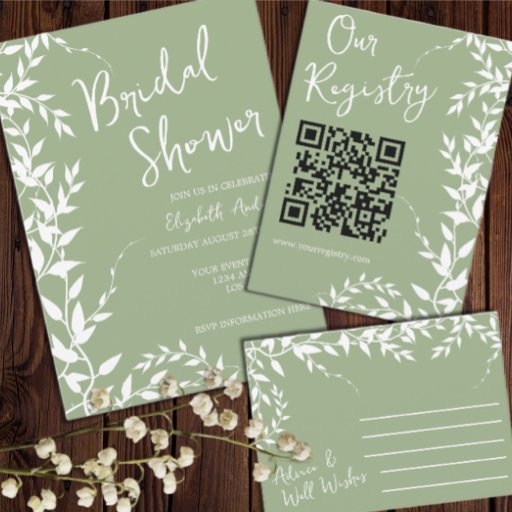 Sage Green Botanical Leaves Bridal ShowerDesignad av Harmony S