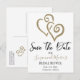 Skicka meddelandet "Spara datumet" för en möhippa eller annan speciell händelse med koppling till Khakis hjärtkonst på båda sidor. Anpassa texterna fram och tillbaka i mallen eller klicka på Anpassa för att välja det teckensnitt stil, storleka och färg som du vill ha.
