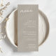 Gör möhippan till en chic med menyn Taupe-minimalistisk skriptstil, med ett förfinat, modernt skriptteckensnitt som exuderar underskattad Möhippa. Med gäster blir det enklare att använda chicen i den här menydesignen i kärlek. Dess minimalistiska stil hindrar det från att framstå som klumpartat eller alltför fustigt. Tuppen färg tillför en liten personlighetsbit. Det är perfekt-menyn för den moderna bruden som vill att hennes dusch ska kännas färsk och contemporary.