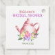 Elegantens möhippa föredrar taggar för teduschen party. Anpassa den söta tekannan med vattenfärger och blommor som illustrerar utskriven favorittagg med bridens namn och datum.