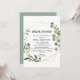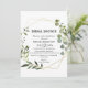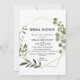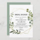 Den tropiska grönten löv inbjudningskort för möhippan är perfekt för en bröllopsknapp. Utformningen har handmålade vackra löv för grönt, som lägger till ett guld-geometriskt ram.