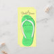 Stor grönt flip flop inbjudningskort för möhippan med en gult polka punktbakgrund. Anpassa text efter behov och lägg till registerinformation på baksidan eller ta bort den om den inte är önskad.