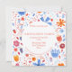 Modern botanisk vattenfärgsmålning av blåblommor och orange vild på vit bakgrund. En söt som samordnar Inbjudningskort för möhippan som ni kan ändra till kostym i ert eget firande.
