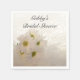 Anpassa söt White Snöre och Daisy Möhippa Pappra Napkins med namn i bruden som ska vara. Dessa elegant anpassningsbar botaniska stil engångsknapor av möhippa har ett blommigt foto av en bukett av vita blommar av blommor av daisy och möhippa med en intrikat vit snöre bakgrund.