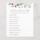 Spelkort för möhippa med en vattenfärgad kaskad av vilda blommor och grönska med ett fjällande bin. Ett roligt sätt att interagera med duschgäster.
